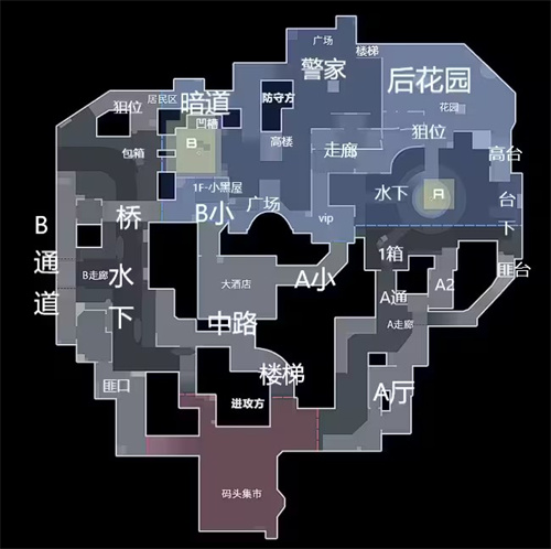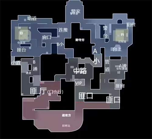 游玩时要注意对vip区域的控制和放弃的度,不要傻傻的死磕,同时两方都要学会控制警后小道,此小道为快速转点和断回防提供了完美基础