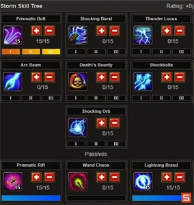 学一个主动技,那就是第一个技能——五彩闪电,主打技能,四种元素伤害,及一定几率附加四种元素debuff,自动追踪,CD短,魔耗少,充能快。又一个神技啊!在有些地形,还可以做到就你打的到怪,怪打不到你--!不过此技能我推荐时+1的,因为1J魔耗就10点,而太高级了魔耗根本吃不消,我只是指望它来出状态,触发刻印伤害(要知道触发3个刻印的伤害那可不是闹着玩的,一个刻印满级最高6000+的伤害。三个就是18000,而且还不算期间debuff带来的收效,比如毒就可以减33%的全部护甲,其他三系还有持续伤害呢,这样算也就不奇怪为什么怪上了状态之后被打会类似于被秒杀的效果),而且它充能很快,一旦充满能,冰波就无限用了,而且还不停触发刻印~所以说,不要指望这个技能来输出,就算升满它(加30%伤害),由于它基础伤害太低了,砸14点技能点进去还不如快速把你的等级练起来提升快。