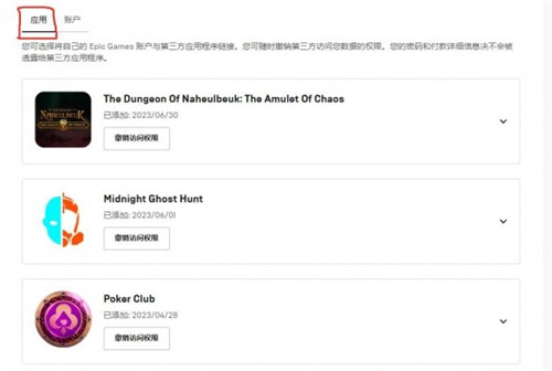 6、最后找到永劫无间的游戏,选择撤销访问权限,然后就可以登录游戏了。