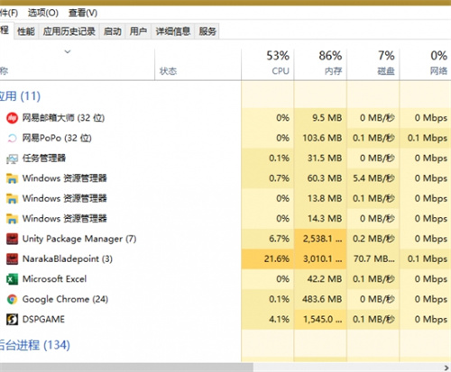 1,请先关闭游戏,检查任务管理器检查不必要的内存占用: