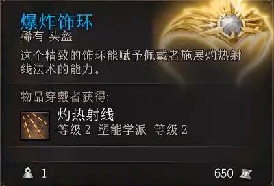 3、爆炸饰环:获得灼热射线法术。