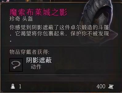 1、魔索布莱城之影:获得阴影遮蔽法术,每个长休可以使用一次,标准动作开启隐形。