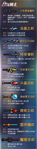 少年勇者、持戒僧杖、法晶之杖、凤王法杖、腐化之灵、国师魔杖、海核君王、火晶法杖、近卫法师、摩根手杖、熔岩之柱、熔鱿之脊、哨卫法师、生命灌注、原石之力。