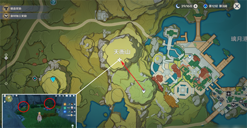 矿物位于璃月,建议在队伍中加入七七/烟绯,天赋可以标记特产位置