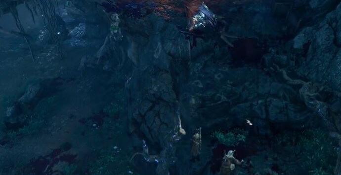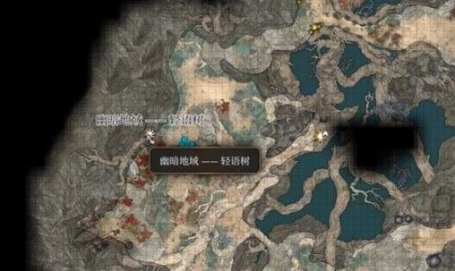 1、首先我们来到图中的幽暗地域的轻语树附近。