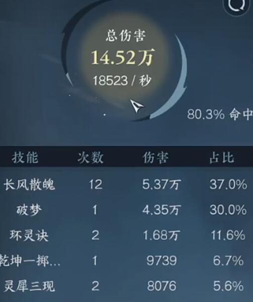 4、在这里有各种伤害数值以及占比。