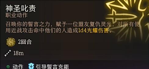 推荐原因:专属技能神圣叱责可以召唤你的誓言之力,赋予一位盟友复付用近战攻击命中他们的人造成1d4光耀