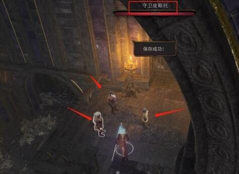 2、玩家上岸后从左边的楼梯上到二楼平台上可以和守卫皮斯托互动。
