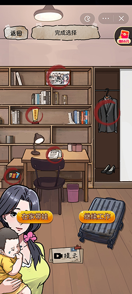 3、最后要做出选择,在家带娃还是继续工作,不做选择,直接地上的箱子就可以过关了。