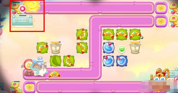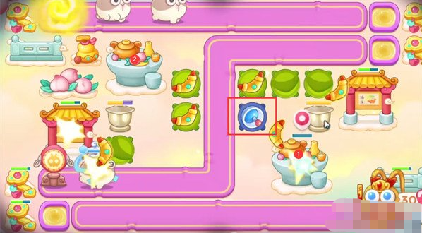 9、最后一波至关重要,建议大家全程一倍速,遇到运输车和仙女兔提前锁定,最后一波的时候怪到后半路的时候,前面炮塔卖掉,全部在后半段放置雷达,具体塔防如下图。