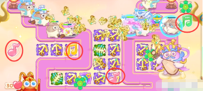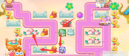 4、开出的格子全部放置船锚,每个区域一个泡泡塔,一般三波就能实现障碍物全清理。