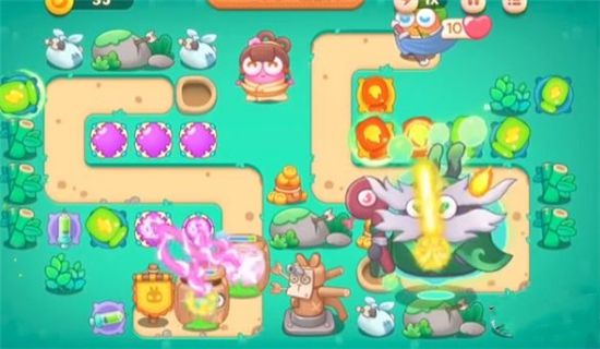 1、前期的时候在左上角位置建立瓶子炮直接升级到满级,用火炮打掉石头。