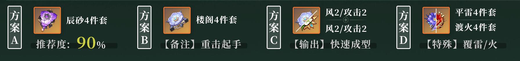 【辰砂4】>【风套2/楼阁2+攻击2】>【楼阁4】