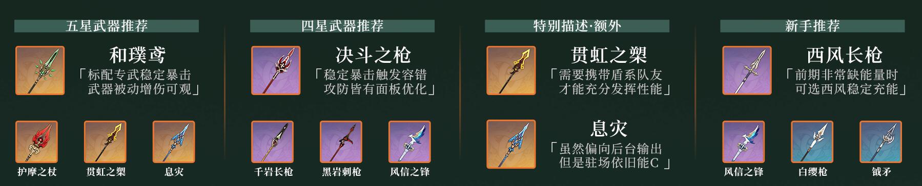 贯虹之槊:提供高额攻击力加成,特别是在队伍中有其他角色提供护盾的情况下。