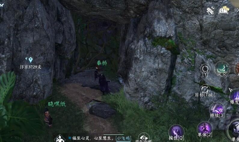 1、在这里使用火系技能将前面山洞的藤蔓全部烧掉。