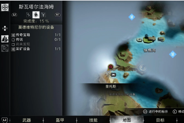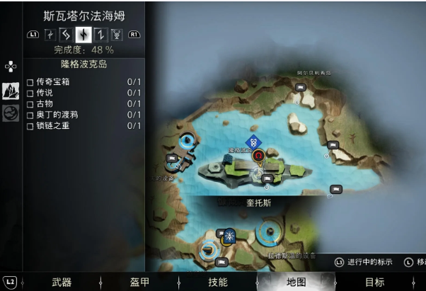4、前往斯瓦塔尔法海姆 - 隆格波克岛,要去往这个岛我们要先完成支线任务锁链之重,让岛浮出来,如图所示位置就可以看到传说标示-关于开采资源。