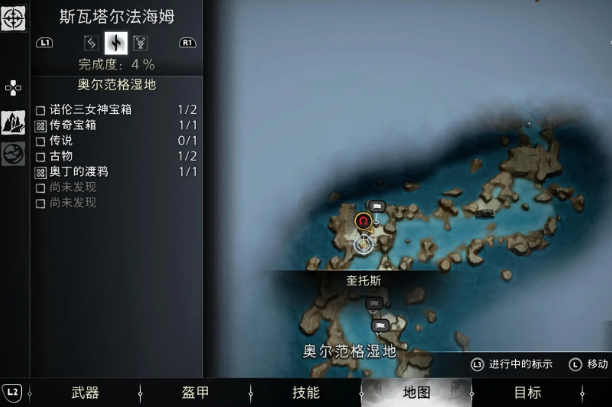 1、前往斯瓦塔尔法海姆 - 奥尔范格湿地,可以在如图所示的位置找到传说标示-危险的路。