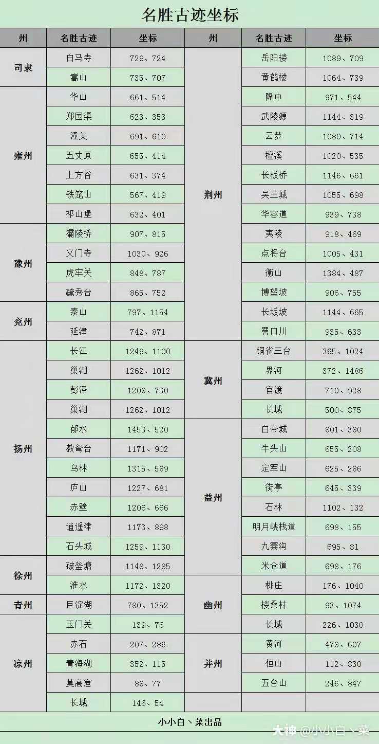 最新名胜古迹位置汇总: