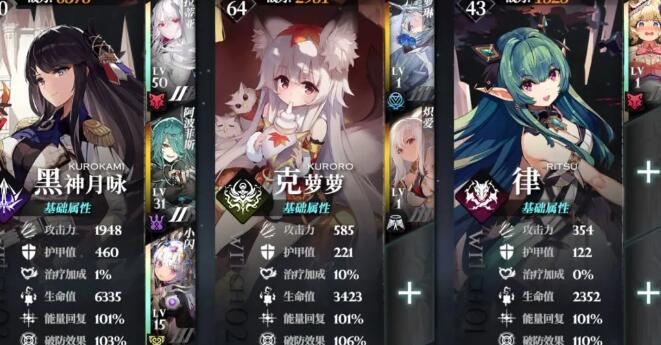 比如像这样全放生存向角色。侵蚀队最大的特点就是抗压猛,最多可以带7个生存向角色还能打出伤害,抗压能力全游戏第一。
