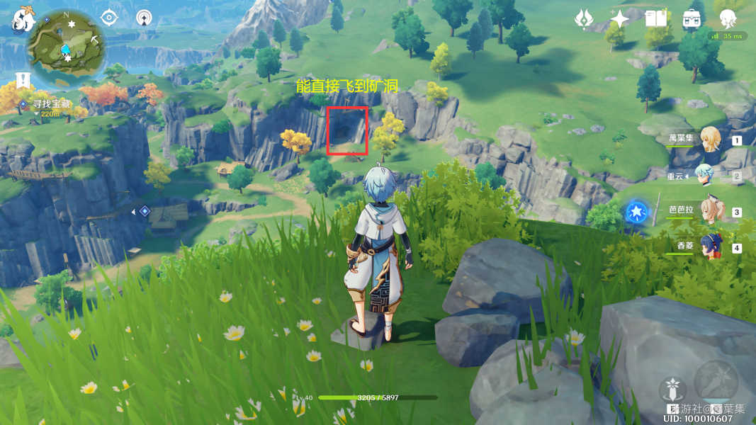 沿着箭头,直接飞到矿洞,进入拿宝箱。