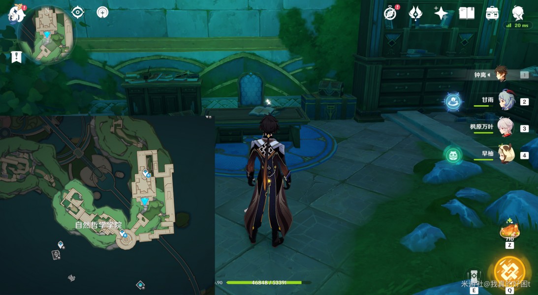 1、来到自然哲学院图示位置,和书本交互一下,之后会把我们传送至秘境,同时自动接取枫丹隐藏任务「尚未结束的故事」「最后的问题」,同时获得成就「自然哲学百科全书」