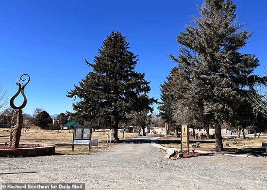 在圣菲纪念花园的一棵树下,只有挂着的风铃和一只海螺壳作为装饰,这片甚至没有墓碑的简陋土地,就是哈克曼与妻子贝齐·荒川的合葬地。尽管哈克曼已去世一年,但现场没有任何鲜花或纪念标志。