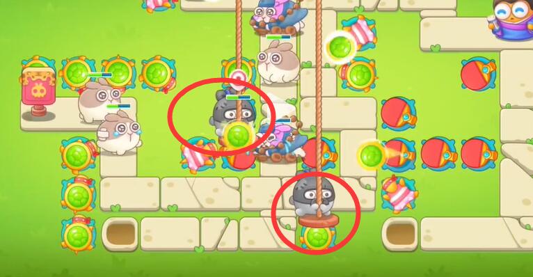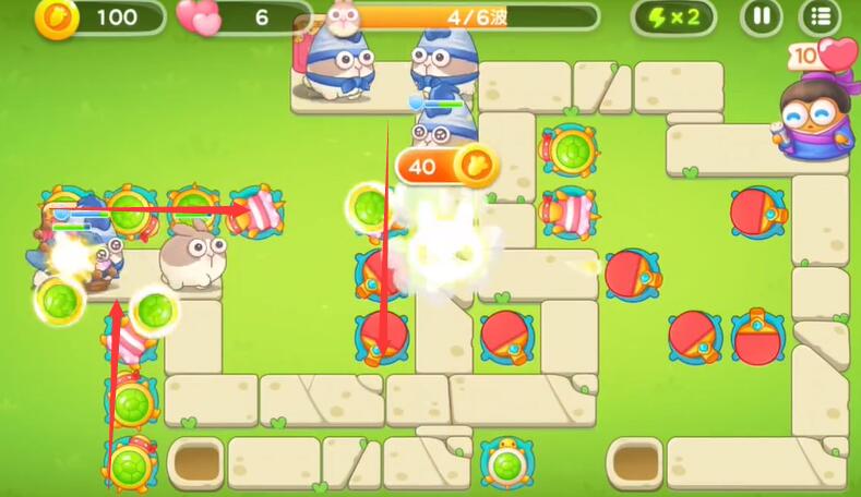 1、在左下出口这里放上乌龟来清怪,右边放上乒乓球牌清理建筑。
