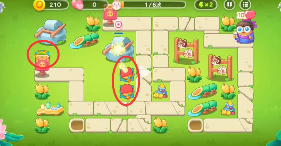 2、在第二波上面的出口也会出现敌人,在这里多放置几个满级乒乓球即可应对。