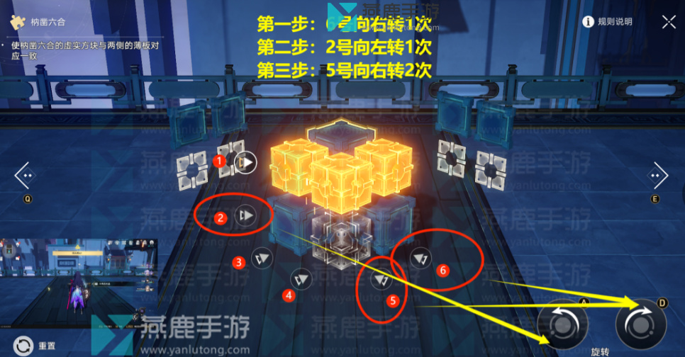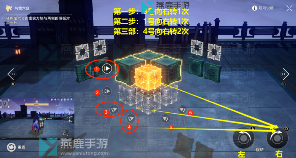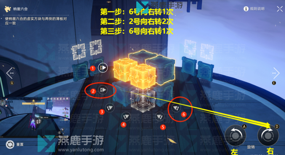 3、左3按钮,向右转1次。左1按钮,向右转1次。左4按钮,向右转2次。