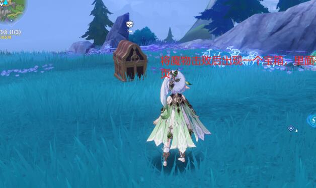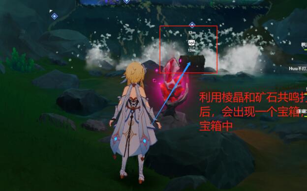 2、玩家从图示锚点传送出去,然后向北前进打开宝箱就可以获得第一个书页。