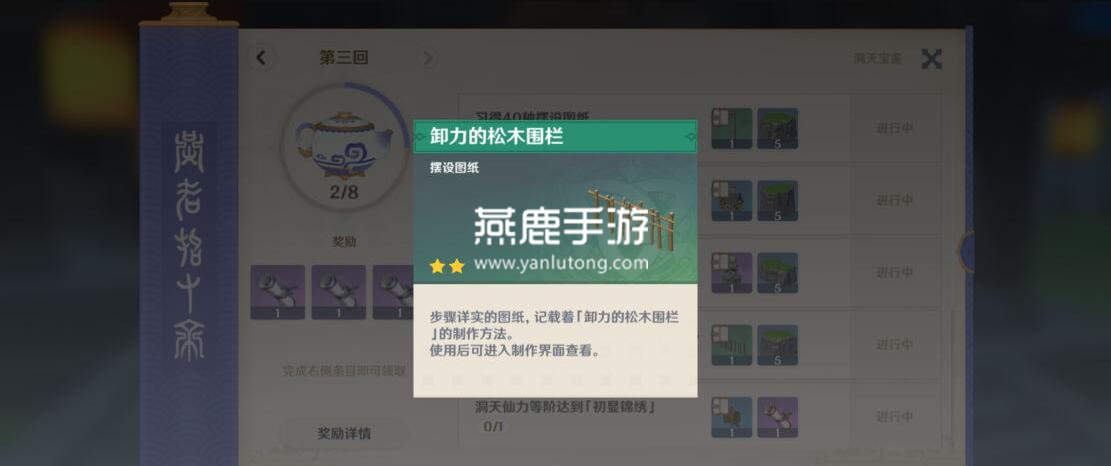 4、最后,即可在第三回中看见卸力的松木围栏图纸了。总结,这个就是升级的奖励。