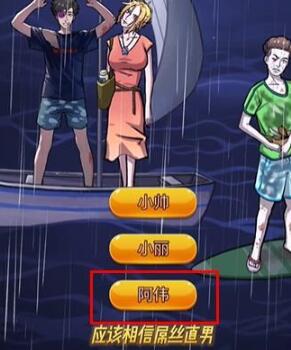5、玩家在之后弹出的选择框中选择阿伟,因为其他人都是想让女主死。