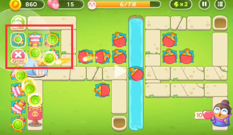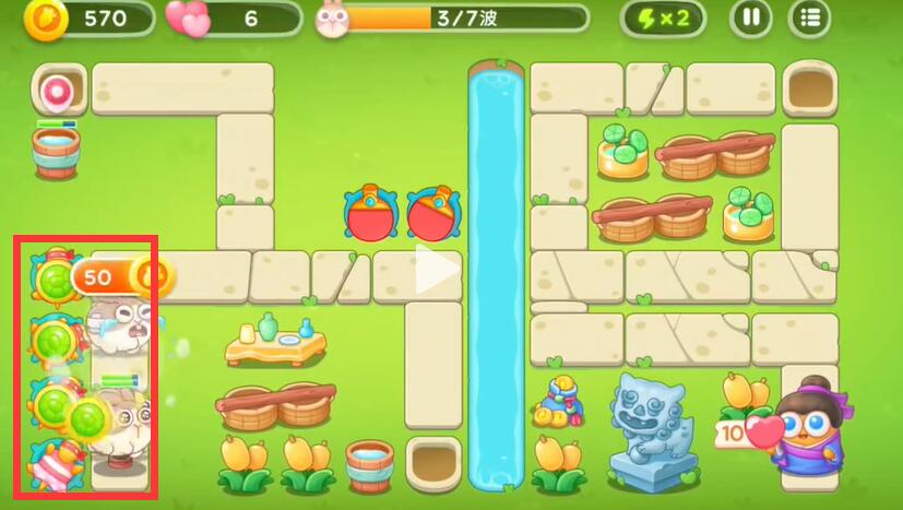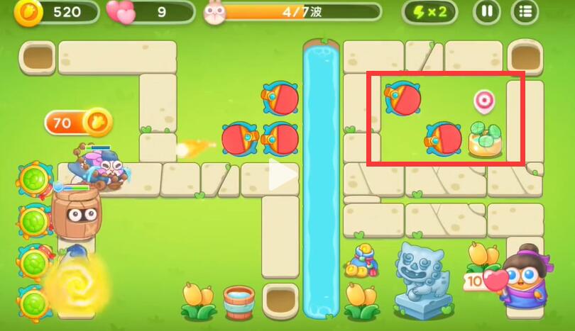 2、之后还是在出口这里放置一些乌龟将旁边的兔子全部打伤。