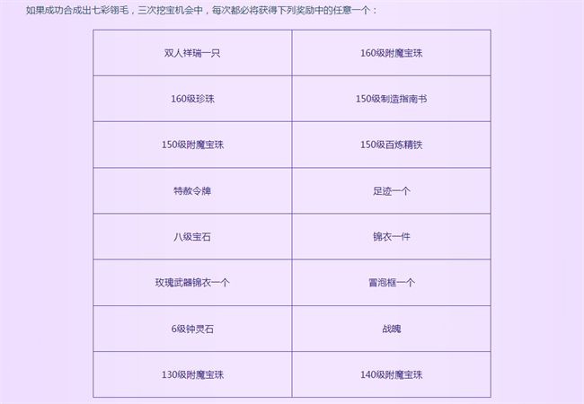 由此可见,少侠们想要合成“2048”七彩翎毛就一定要准备足够多的蓝色翎毛,而且要避免16格的合成栏被全部填满无法移动。活动期间,每根喜鹊翎毛可挖宝3次,并且高级翎毛所挖出的奖励也会更为丰富。如果少侠们成功合成了七彩翎毛,那么在挖宝时还有机会获得双人祥瑞、锦衣、足迹以及八级宝石等丰厚好礼,让你度过一个收获满满的七夕佳节!