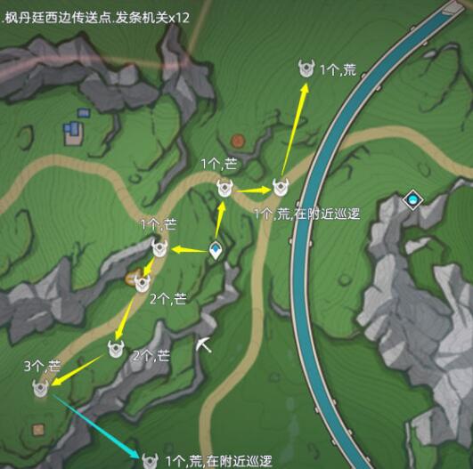 重要提示:黄色路线为高效率刷取路线、推荐去;