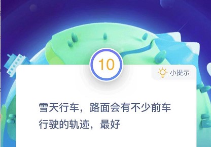 支付宝蚂蚁庄园小课堂12月3日的第二个问题是:雪天行车,路面会有不少前车行驶的轨迹,最好?下面小编就为大家带来蚂蚁庄园今日答案,一起来看下正确回答吧。