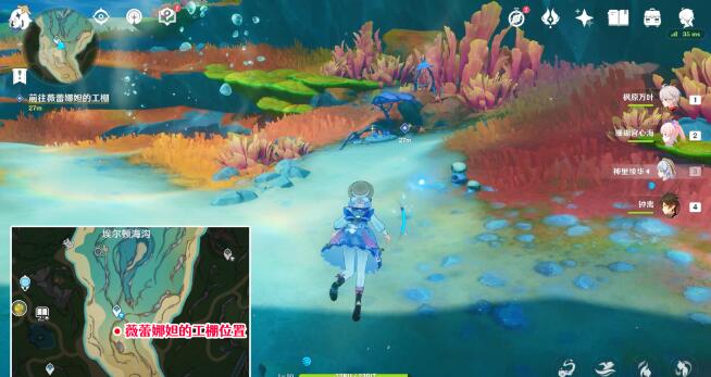 5、试验完前两个药剂后,玩家前往薇蕾娜妲的工棚,去试验第三种药剂。工棚位于大枫丹湖南边水下直接潜水下去就能找到,靠近即可触发剧情完成任务。