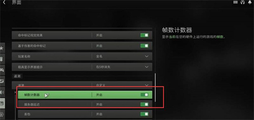 3.在界面列表下拉,找到帧数计数器,点击开启。