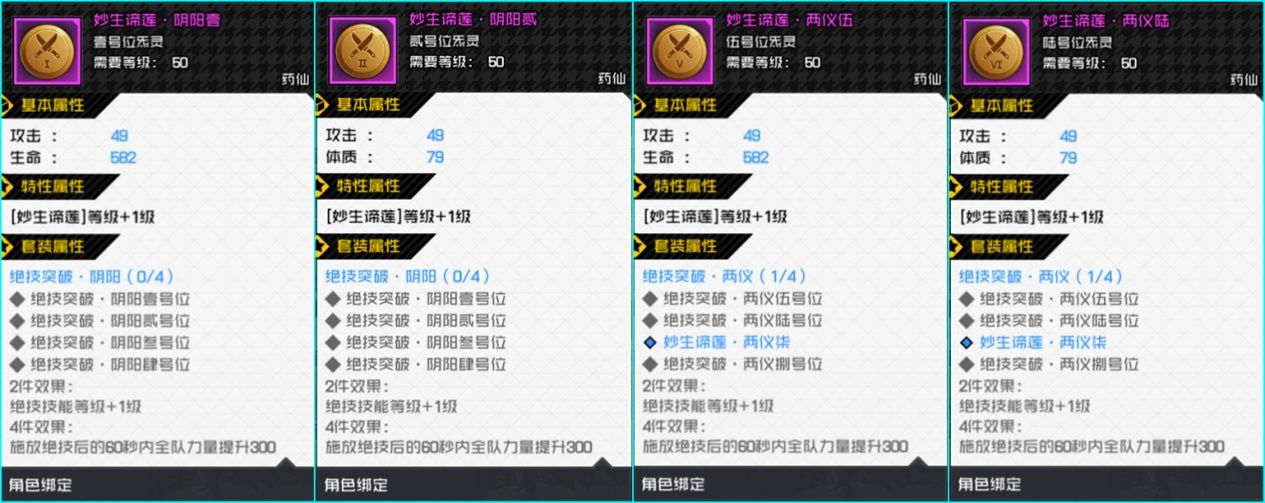 妙谛生莲阴阳壹、阴阳贰、苍龙叁、苍龙肆、两仪伍、两仪陆、玄武柒、玄武捌