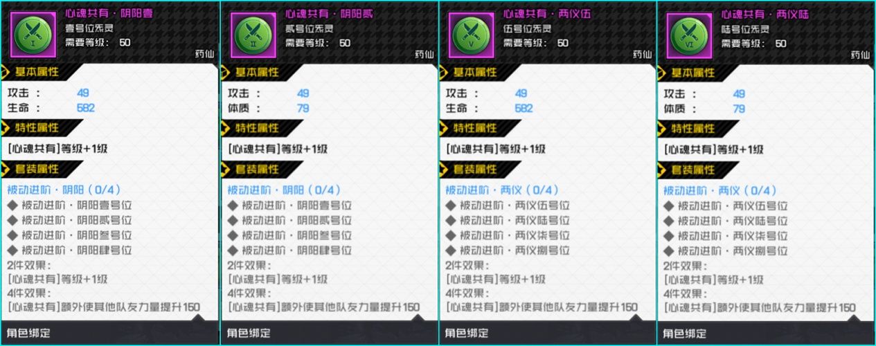 心魂共有阴阳壹、阴阳贰、苍龙叁、苍龙肆、两仪伍、两仪陆、玄武柒、玄武捌