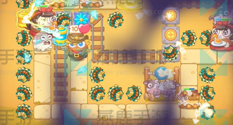 7、在最下面的奶牛这里会有很多的牛出现,在其附近摆放一些弓箭可以将其打掉。