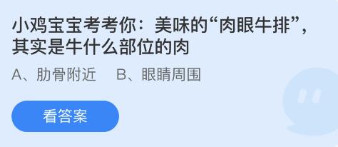 7月5日的蚂蚁庄园小课堂有一个问题是:美味的“肉眼牛排”,其实是牛什么部位的肉?仍有小伙伴不知道问题的答案,下面小编就为大家带来了蚂蚁庄园7月5日正确答案,一起快来看看吧。
