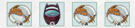 2、接着按顺序放入小麦、水、小麦、小麦;