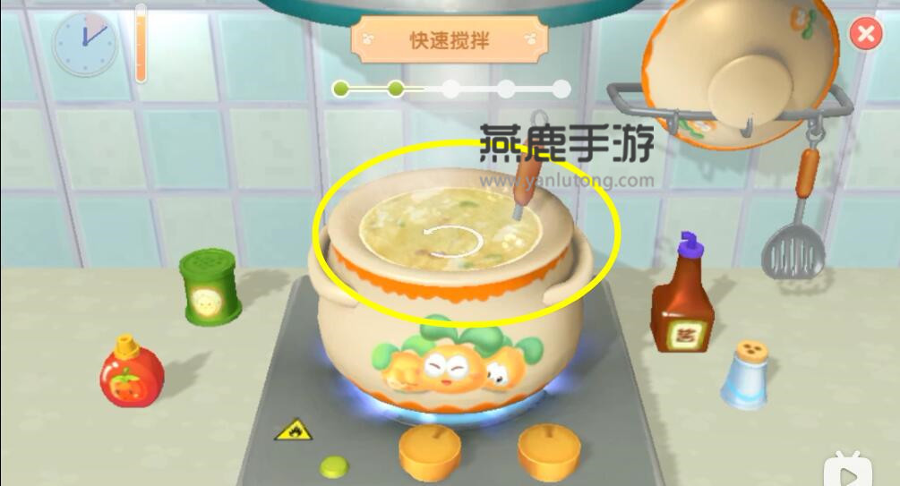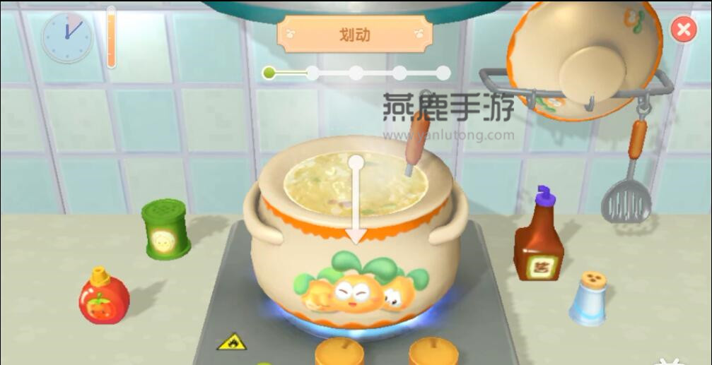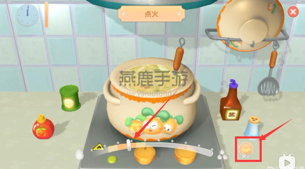 1、首先点火要等到下图的指针到达橙**域,再点击确认,基本每道菜都是要橙**域;
