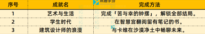 7、解锁全部结局,获得成就:[艺术与生活]。