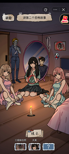 2、第二个故事需要玩家点击墙上的照片、大美和右边的二美,讲一个姐妹相残的故事;