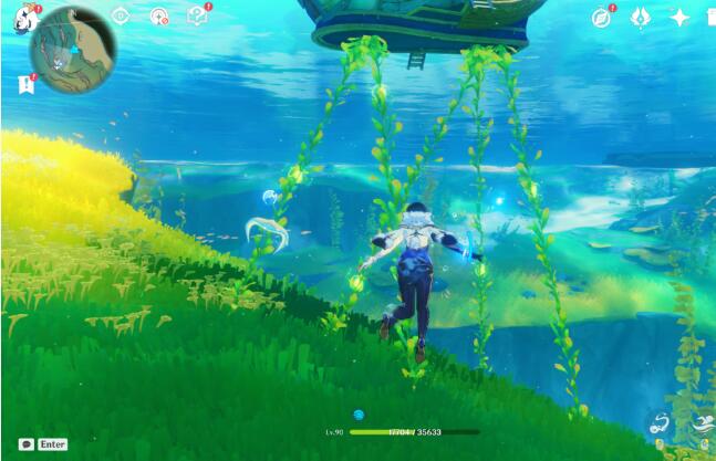 6、六号飞行器需要利用刀鳐将捆在飞行器底下的水草斩断随后登上飞行器,开启引擎就能获得精致宝箱。