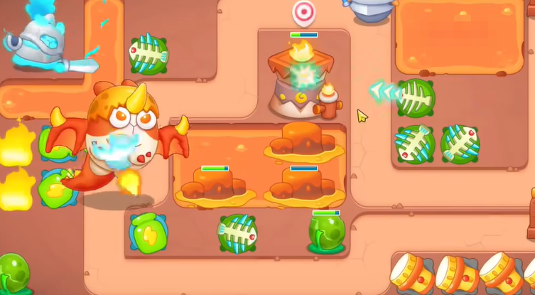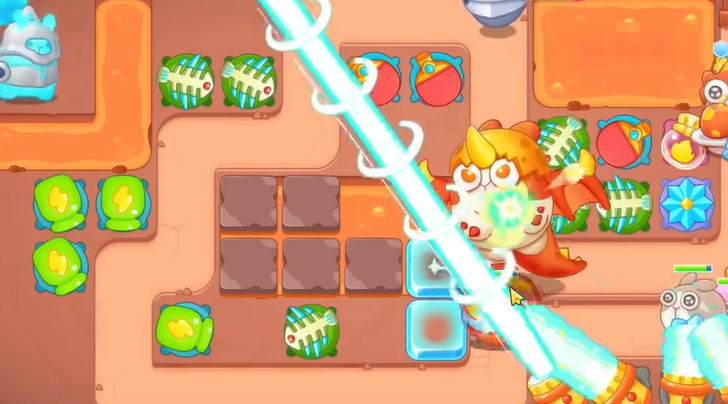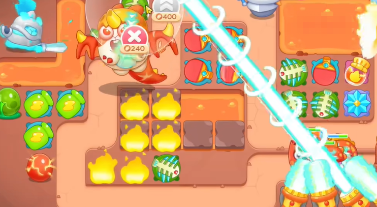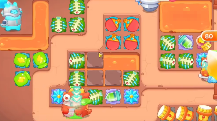 3、钱袋打掉之后,空出位置,继续建立瓶子炮,清理周围障碍物。