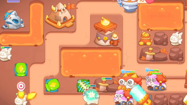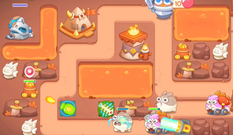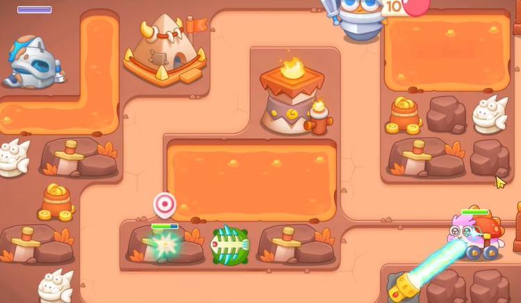 5、第四波恶魔兔出现,在右下角继续增加手电筒,上面帐篷打掉之后,建立鱼刺,快速激活左上幽灵剑士。