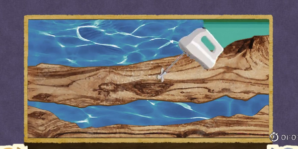 3、接着我们倒上蓝色颜料,再倒绿色颜料,用搅拌机搅拌。